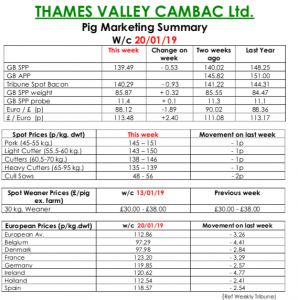 This week’s Pig Marketing Summar, from Thames Valley Cambac, reported that the January doldrums continued to plague trade. Demand was reported as dire by one or two processors, and some cut kills to match.